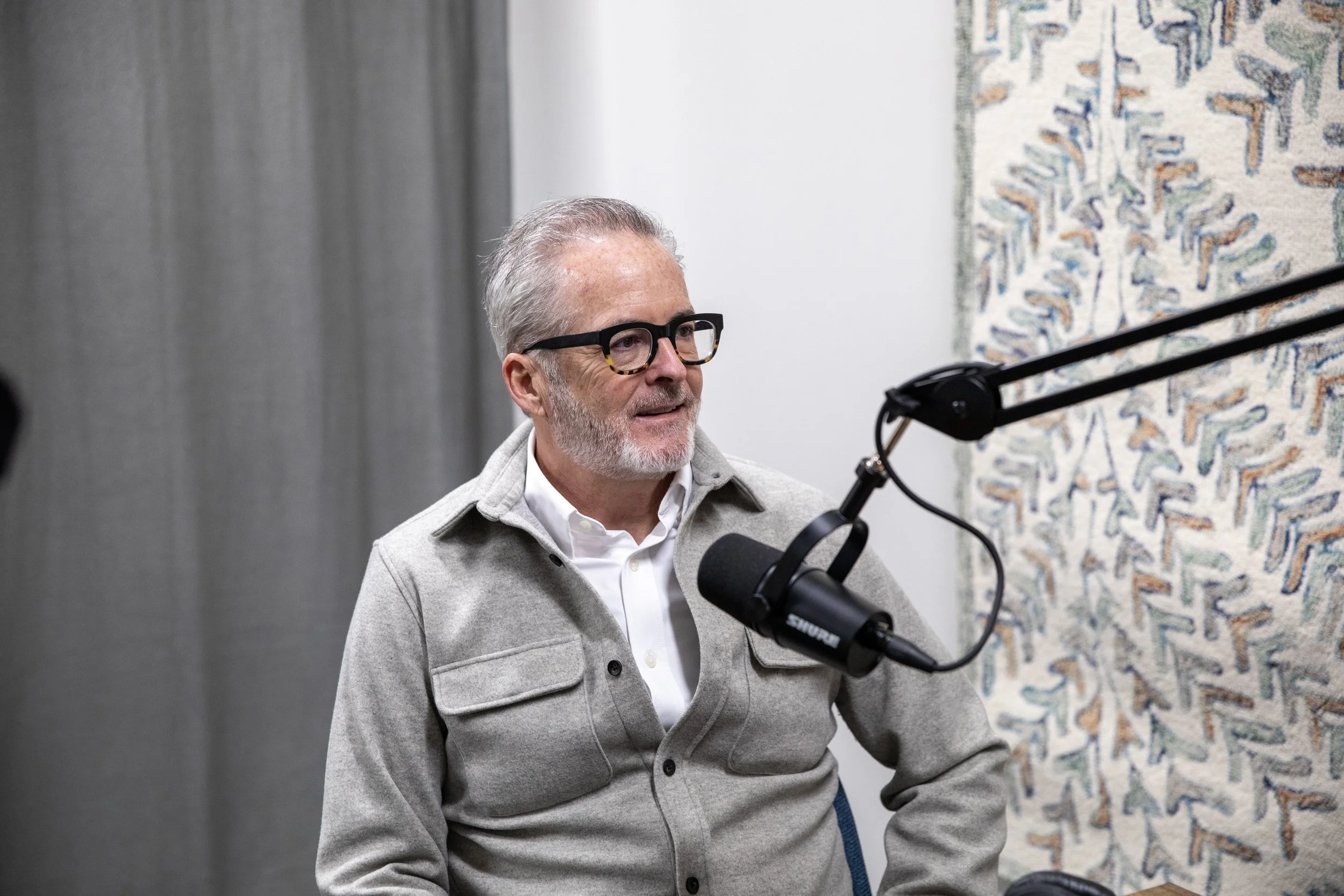 Joe Zueger recording this episode of 605 Founders Podcast in the Loft Advisors Studio at First Dakota National Bank.